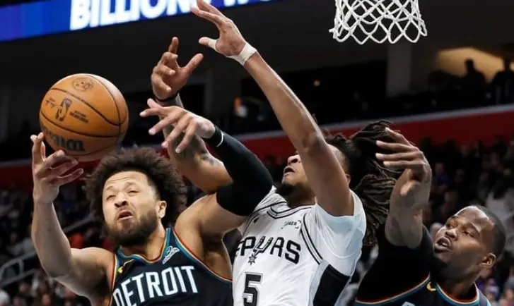 北京时间2月24日,NBA常规赛继续进行,圣安东尼奥马刺队前往客场挑战底特律活塞队。马刺队正处于8连胜之中,这是联盟现存最长连胜纪录;活塞队正处于5连胜之中,这是东部现存最长连胜纪录。活塞队战绩高居联盟第1,但这场强强对话开打之前,NBA官方更新了最新一期球队战力榜,马刺队反超活塞队高居榜首,活塞队屈居第2位。此役,杜伦解除禁赛,斯图尔特继续禁赛,活塞首发五虎为CC+杜伦+哈里斯+罗宾逊+奥萨尔,马刺首发五虎为文班亚马+福克斯+卡斯尔+瓦塞尔+尚帕尼。