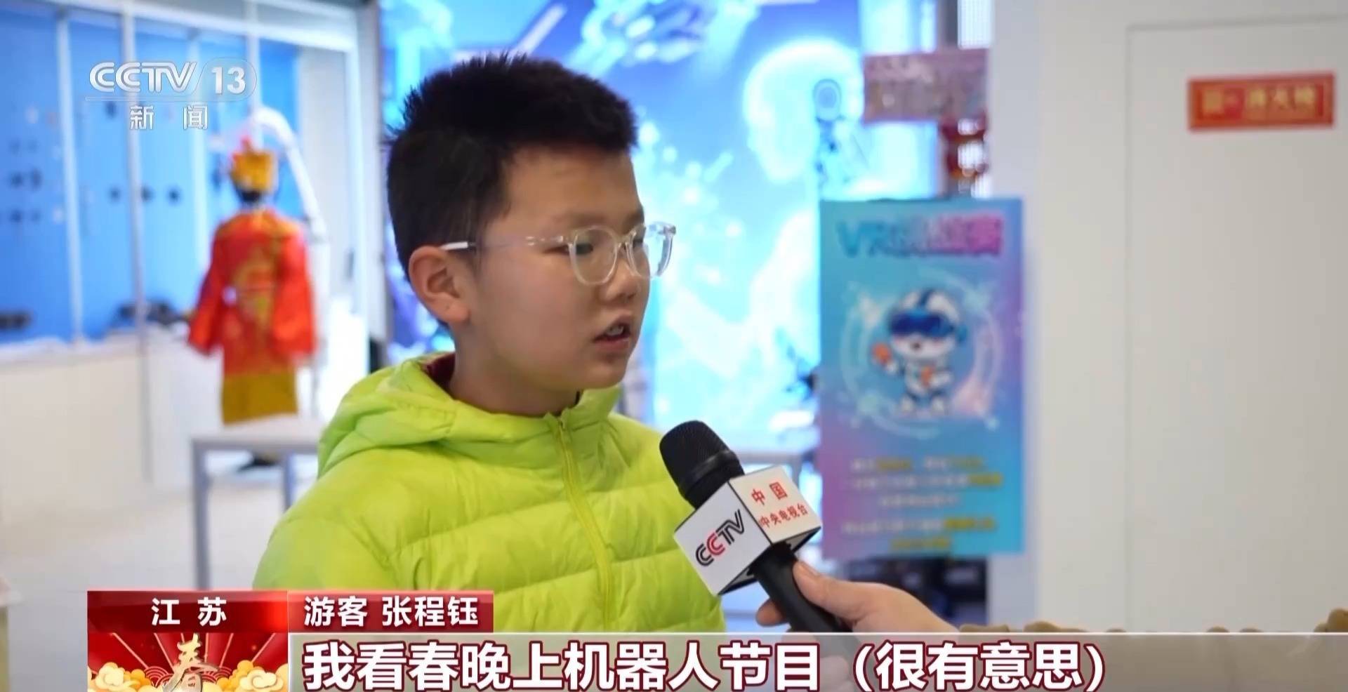游客 张程钰:我看春晚上机器人节目很有意思,刚好看到这个体验中心,我就进来跟机器人互动一下,感觉特别好玩。