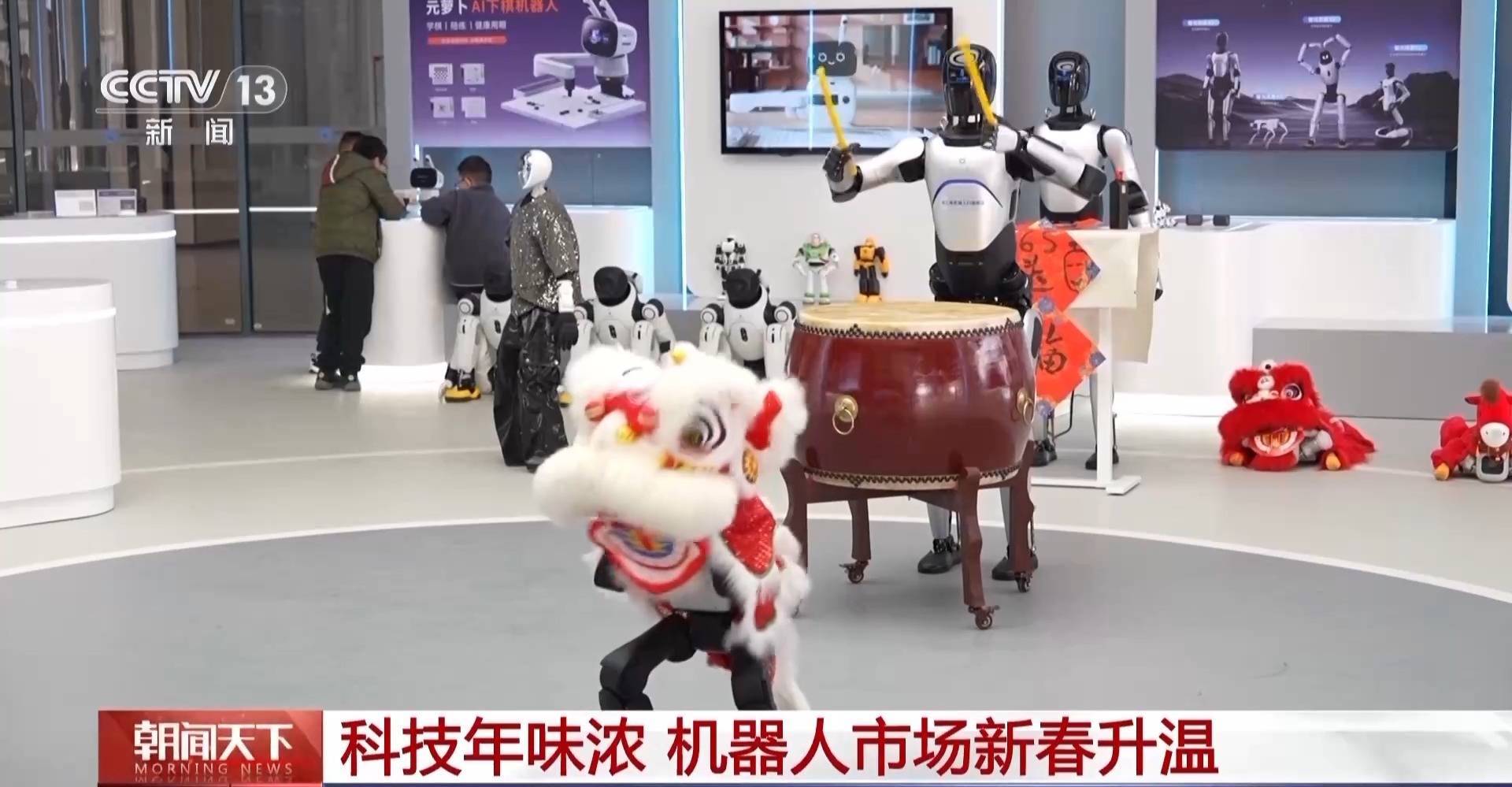 不仅如此,走进苏州高新区这家刚开业的机器人6S店未来体验中心,仿佛进入了一个赛博庙会,敲锣打鼓、舞狮送福,机器人过年也能张罗得有模有样。看完表演,转身还能跟机器人大师对弈比拼,动静皆宜的互动设置,吸引了不少市民游客进场体验。