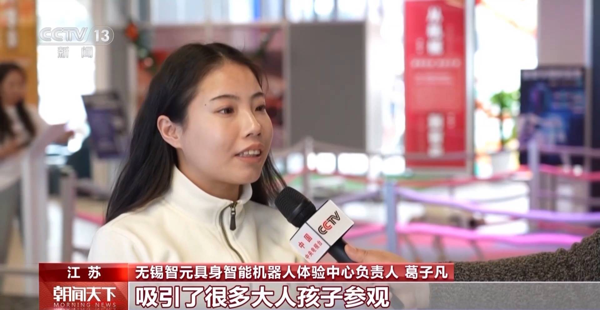无锡智元具身智能机器人体验中心负责人 葛子凡:吸引了很多大人孩子参观,这两天每天的人流量和平常比增加了3~4倍,来咨询租赁或者购买的顾客也很多。